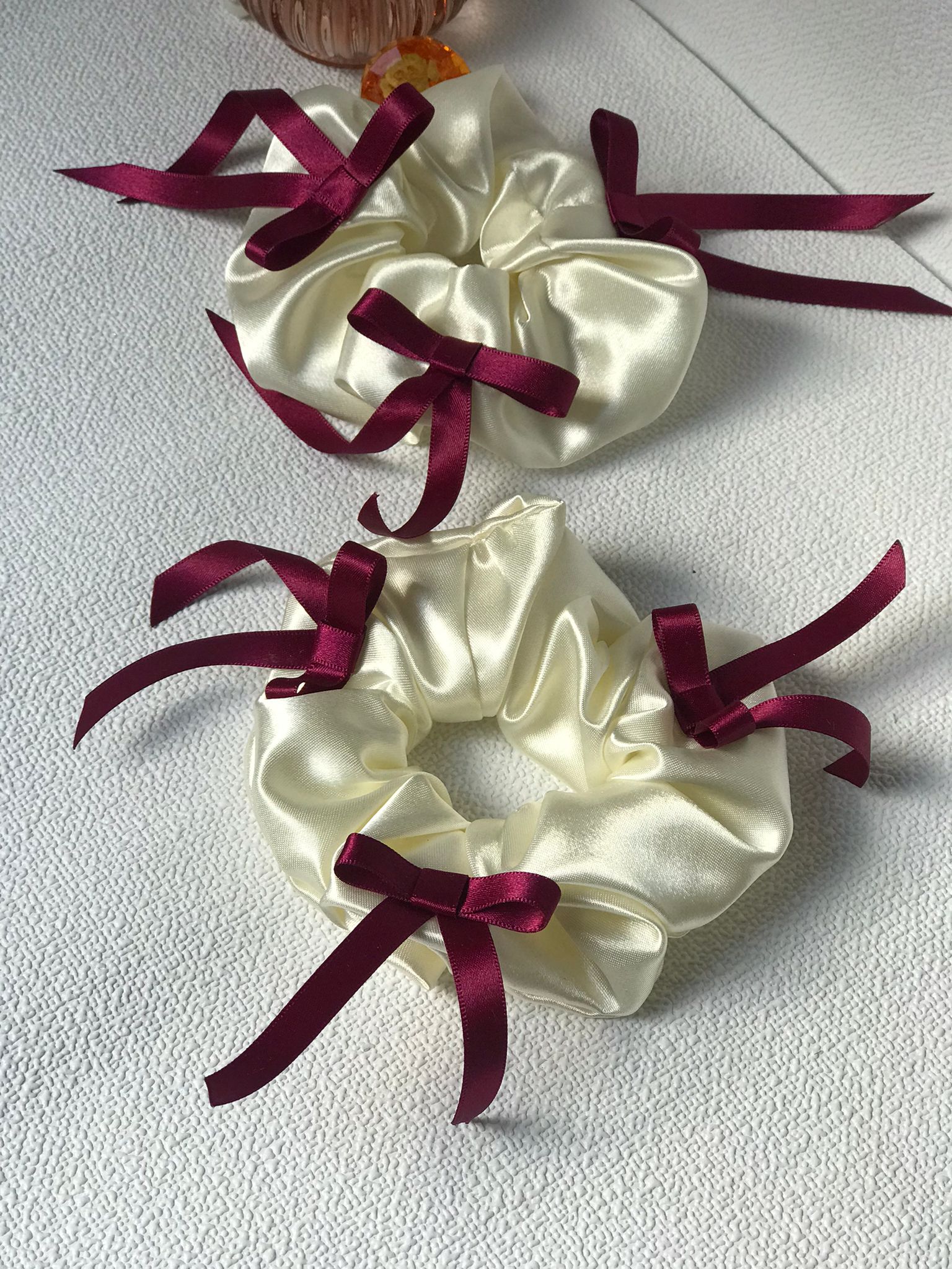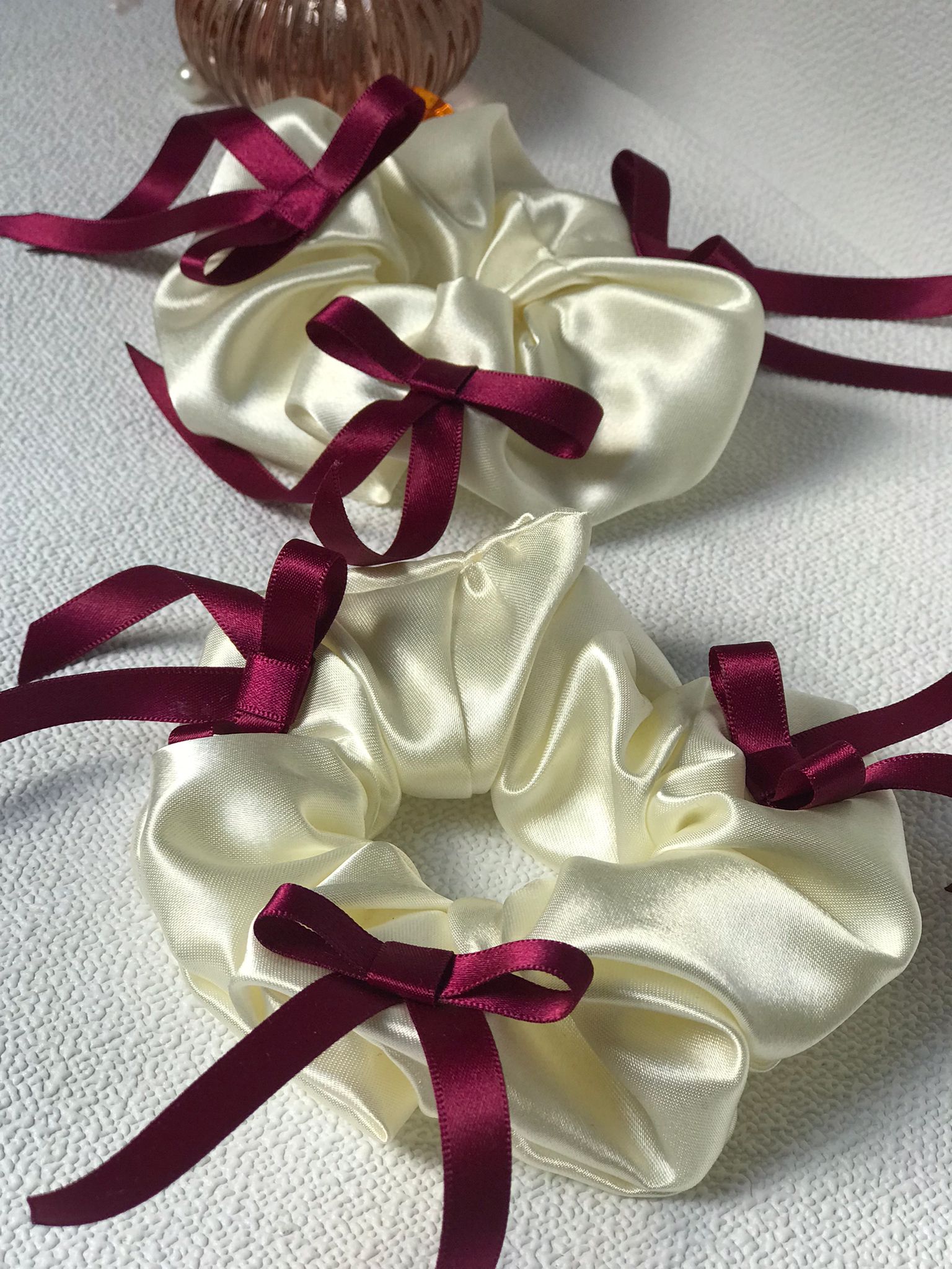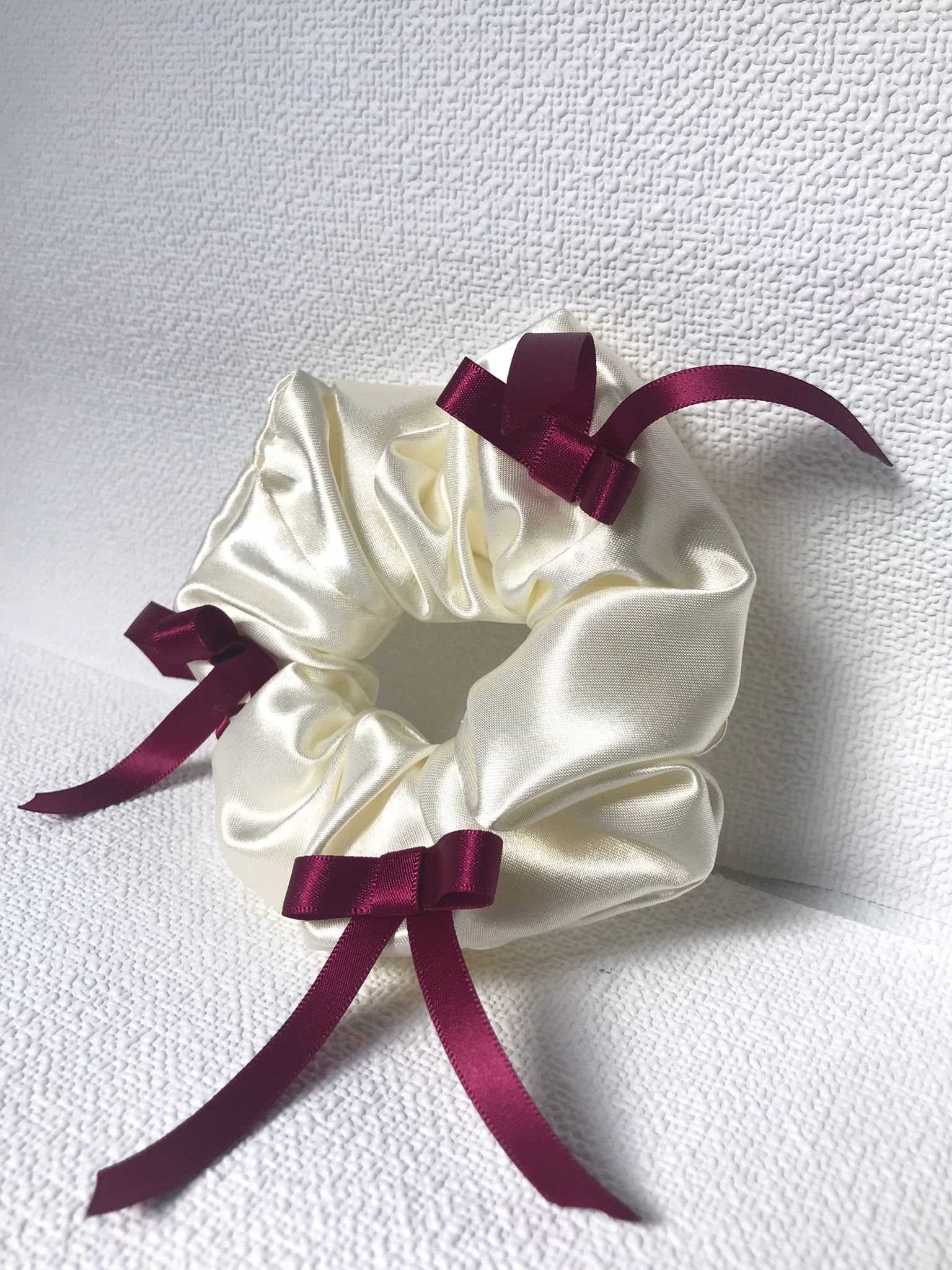 Cream Satin Scrunchie with Burgundy Ribbon Bows (Limited Edition)