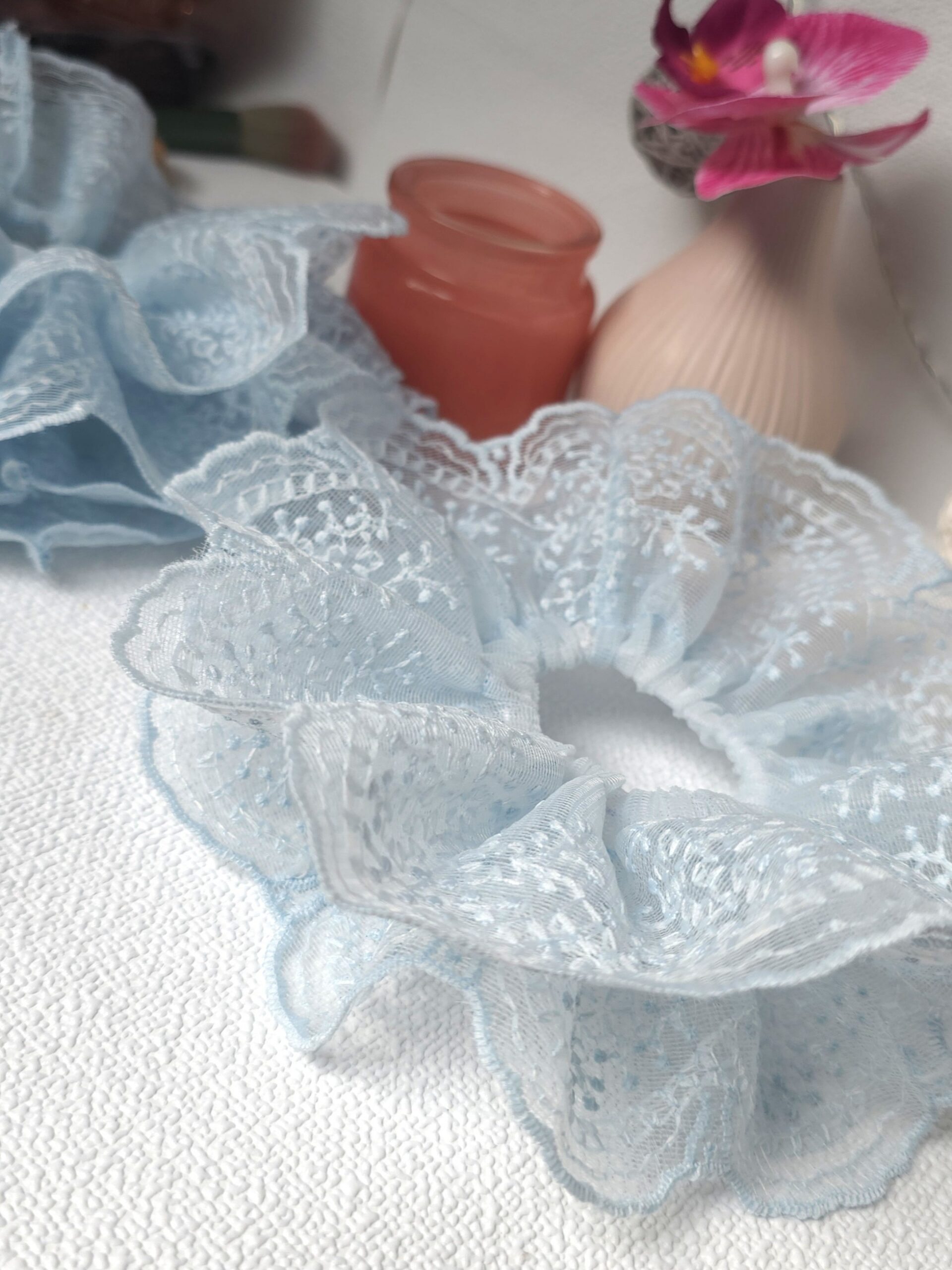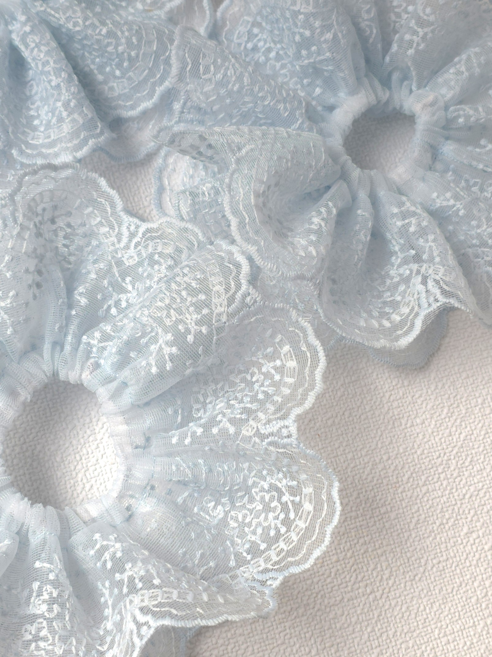 Here are the detailed specs for your Vintage-Inspired Light Blue Lace Scrunchie Set: