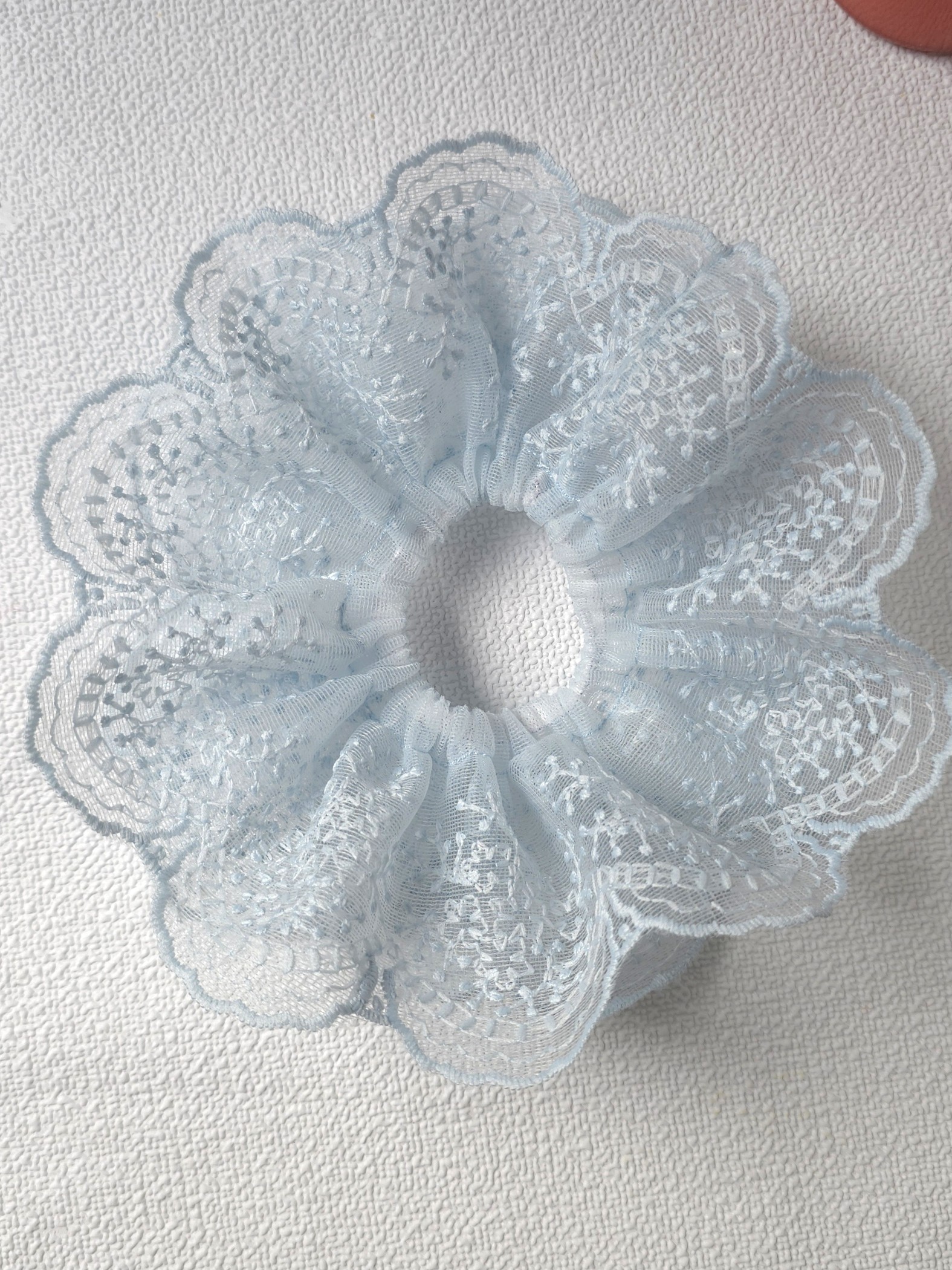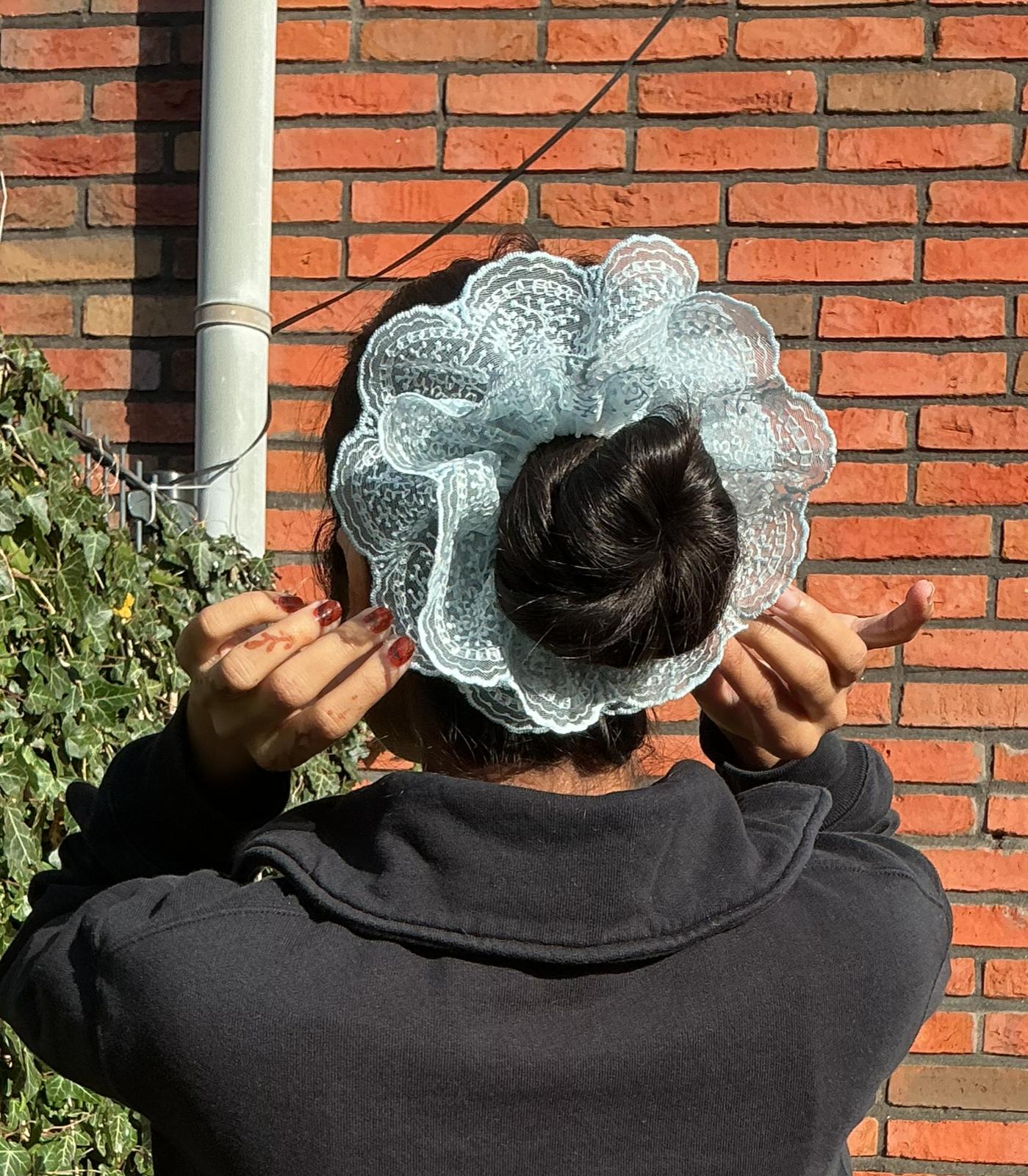Vintage-Inspired Light Blue Lace Scrunchie